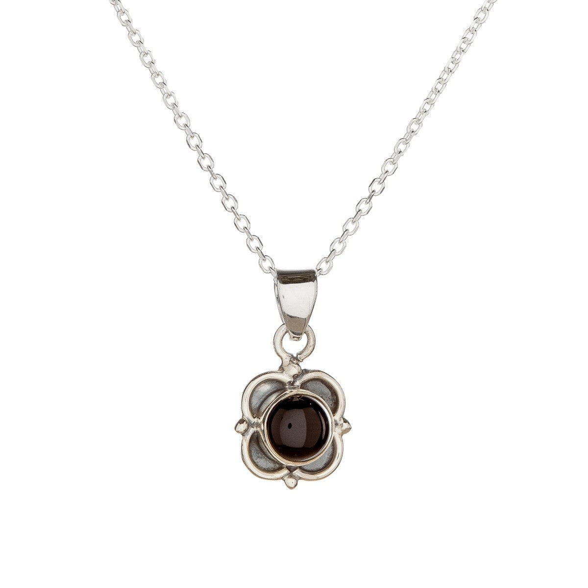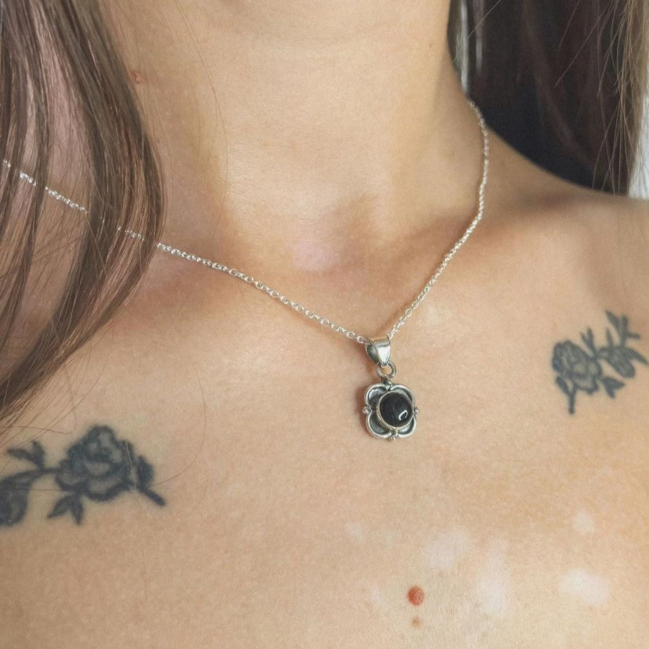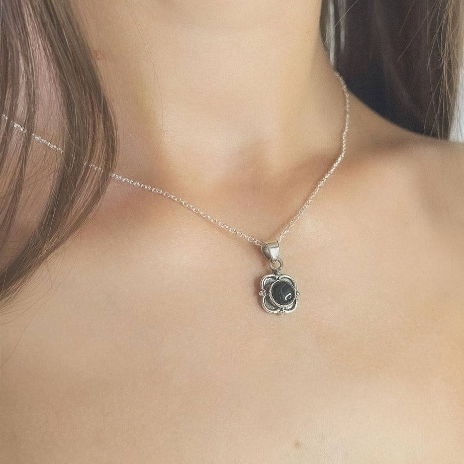 Sidabrinis pakabukas su onikso akmeniu ir grandinėle