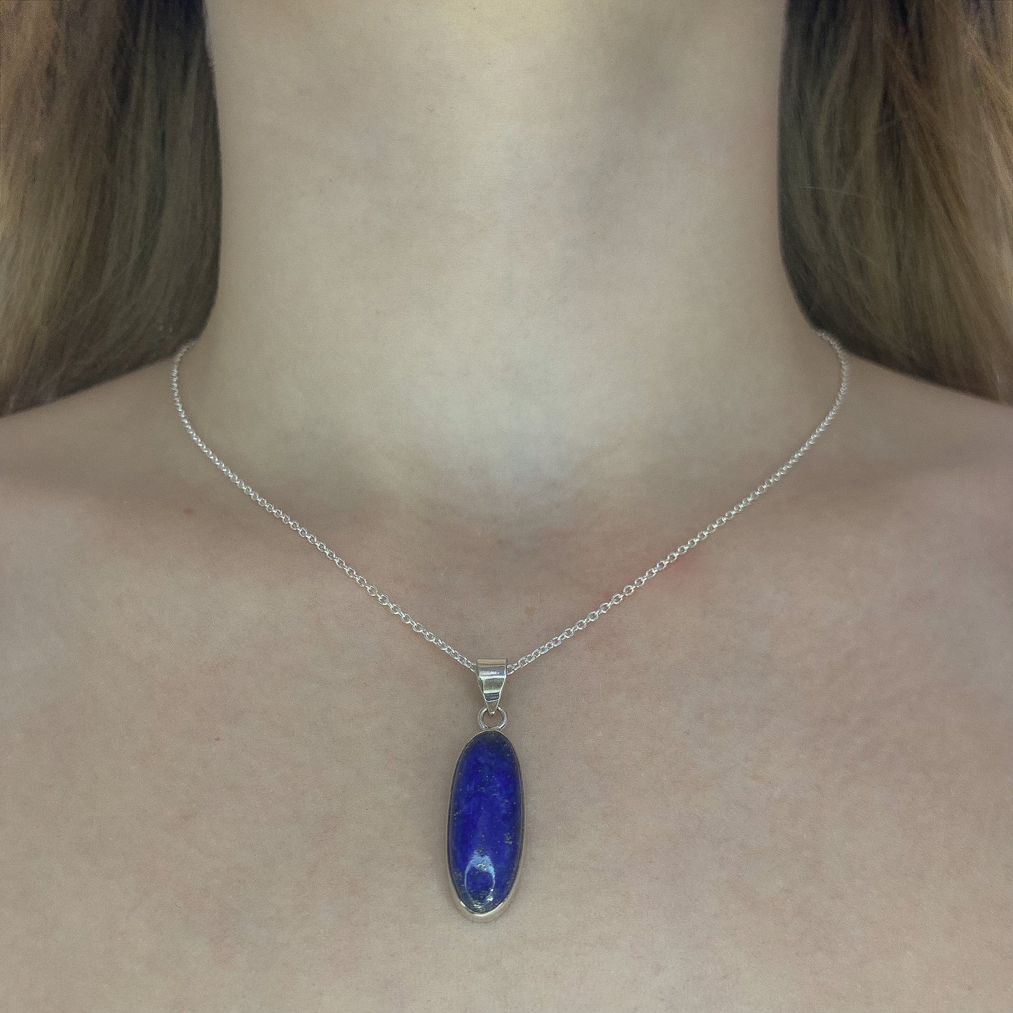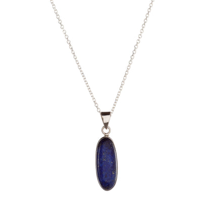 Sidabrinis pakabukas su ovaliu lazurito akmeniu ir grandinėle