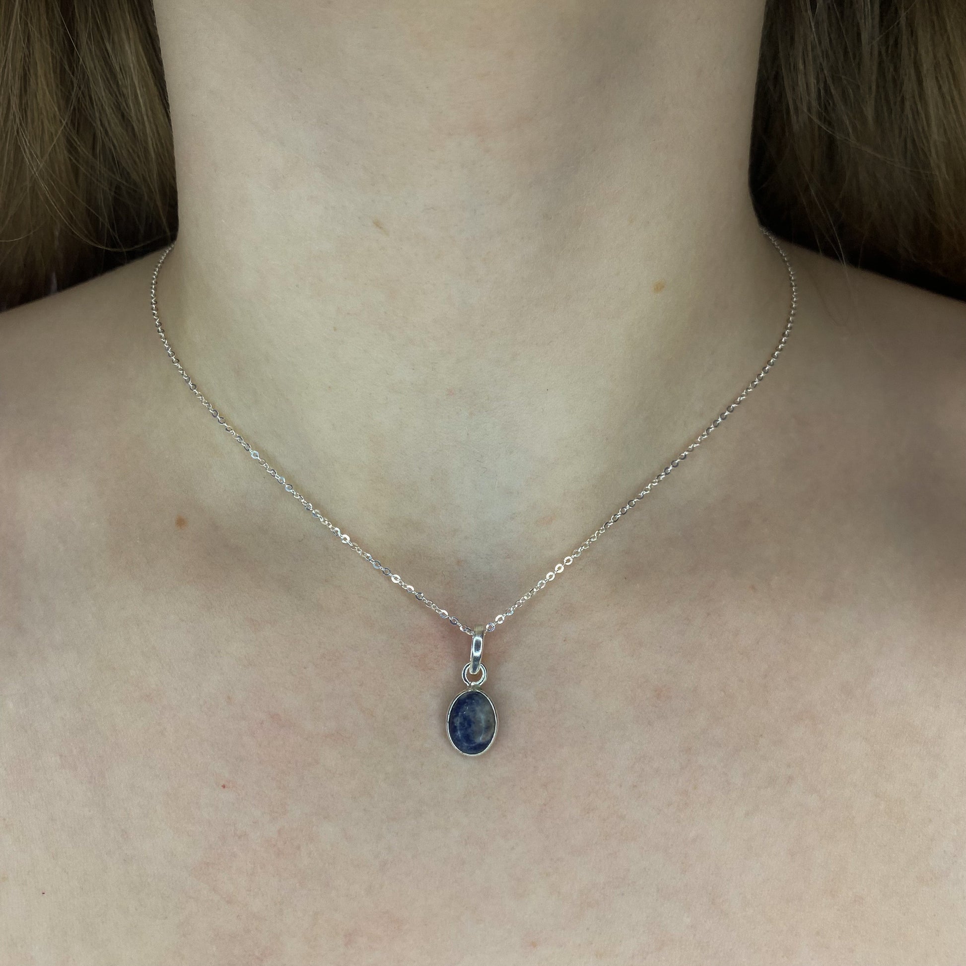 Sidabrinis pakabukas su ovaliu lazuritu ir grandinėle