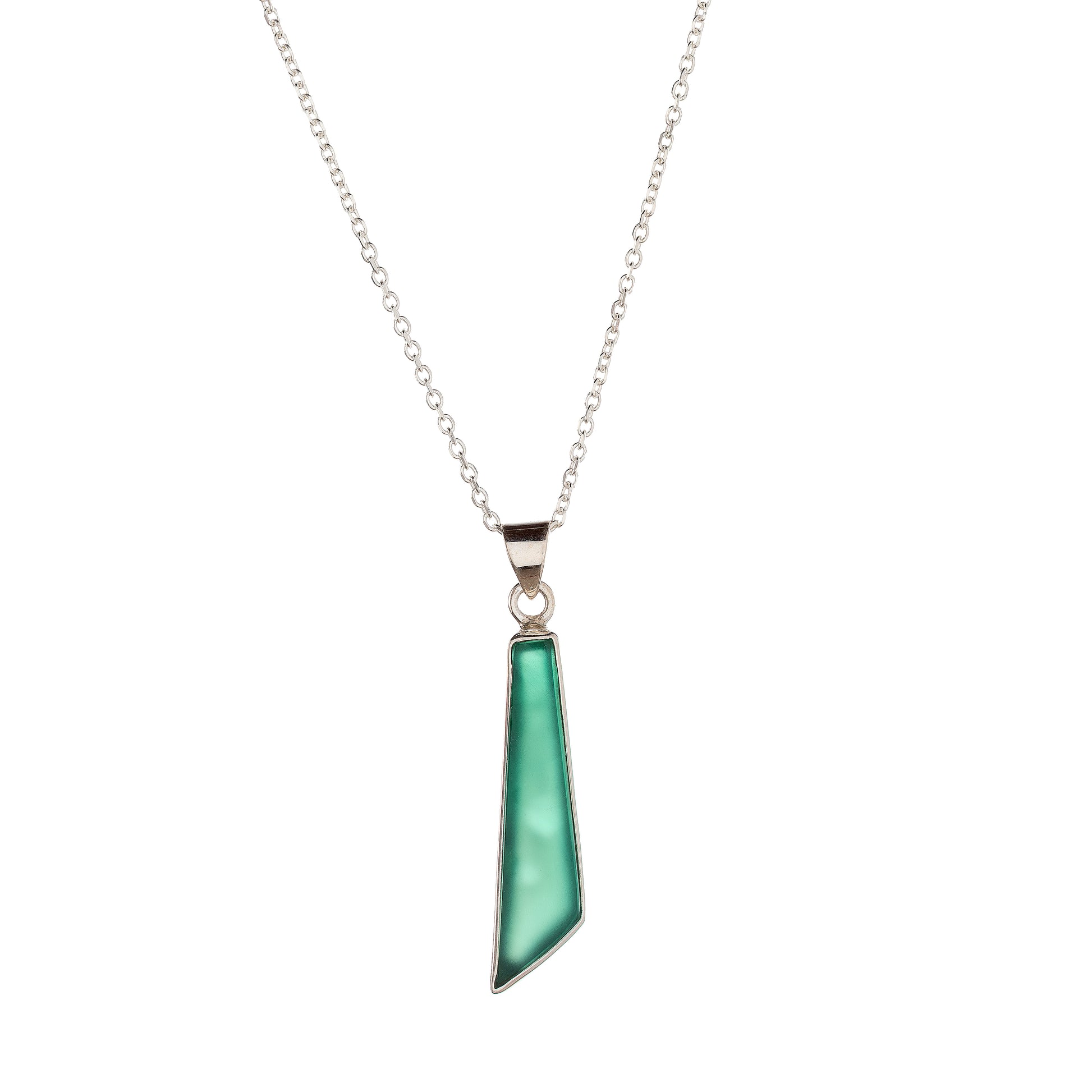 Sidabrinis pakabukas su žaliuoju oniksu ir grandinėle
