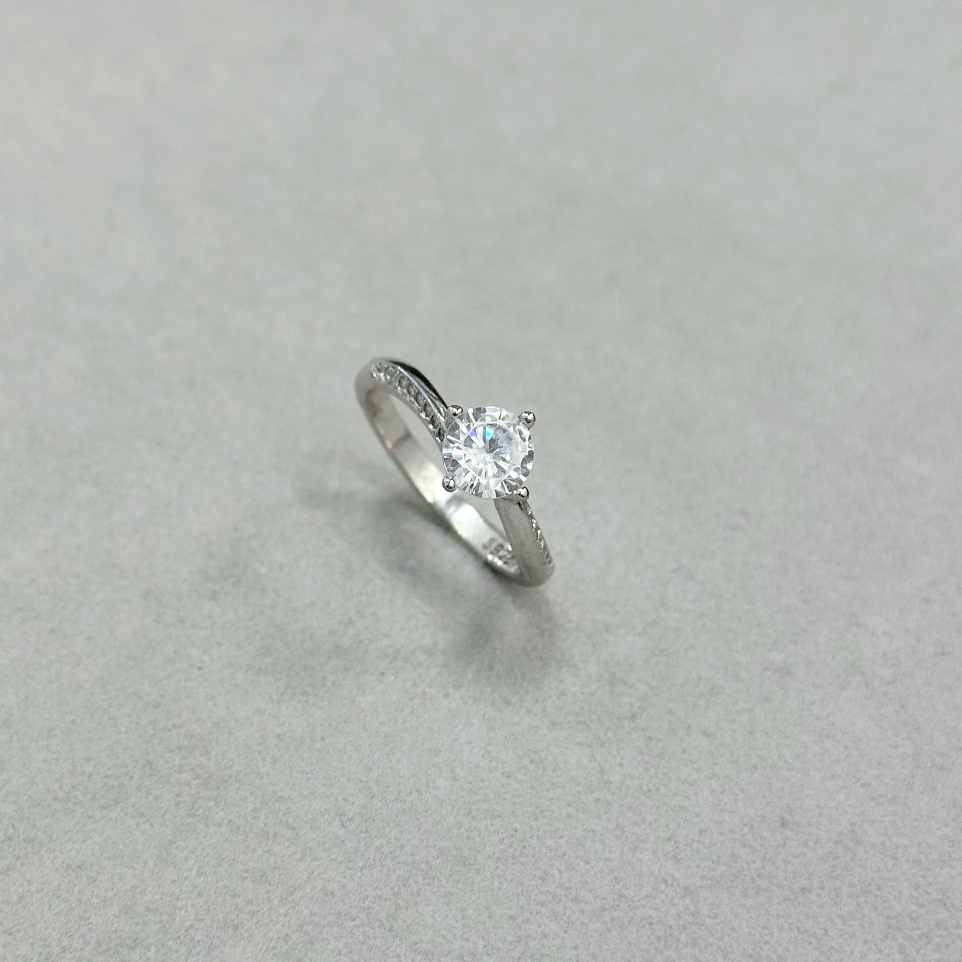 Sidabrinis rodžiuotas žiedas su cirkonio akute