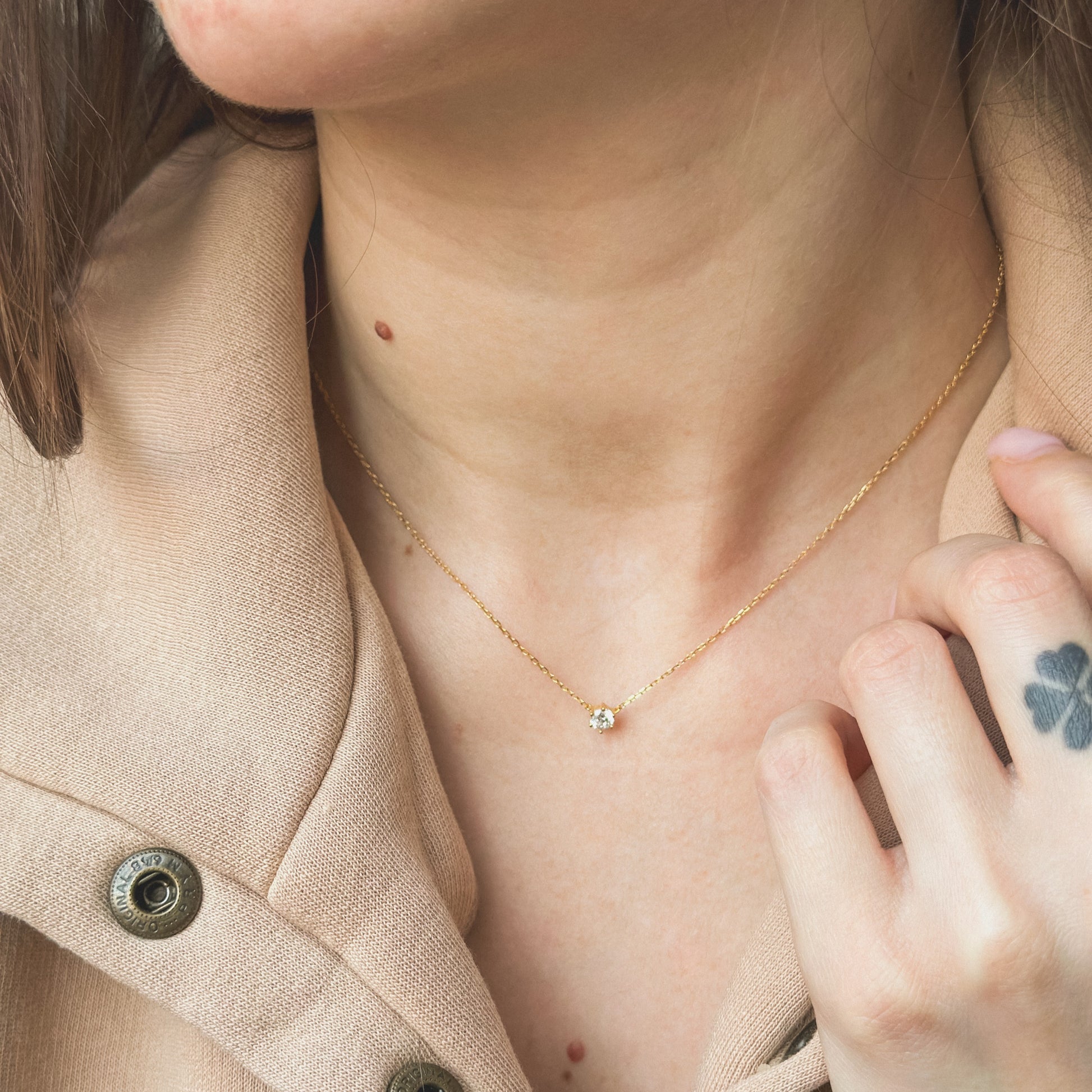 Sidabrinis pakabukas su maža cirkonio akute ir grandinėle
