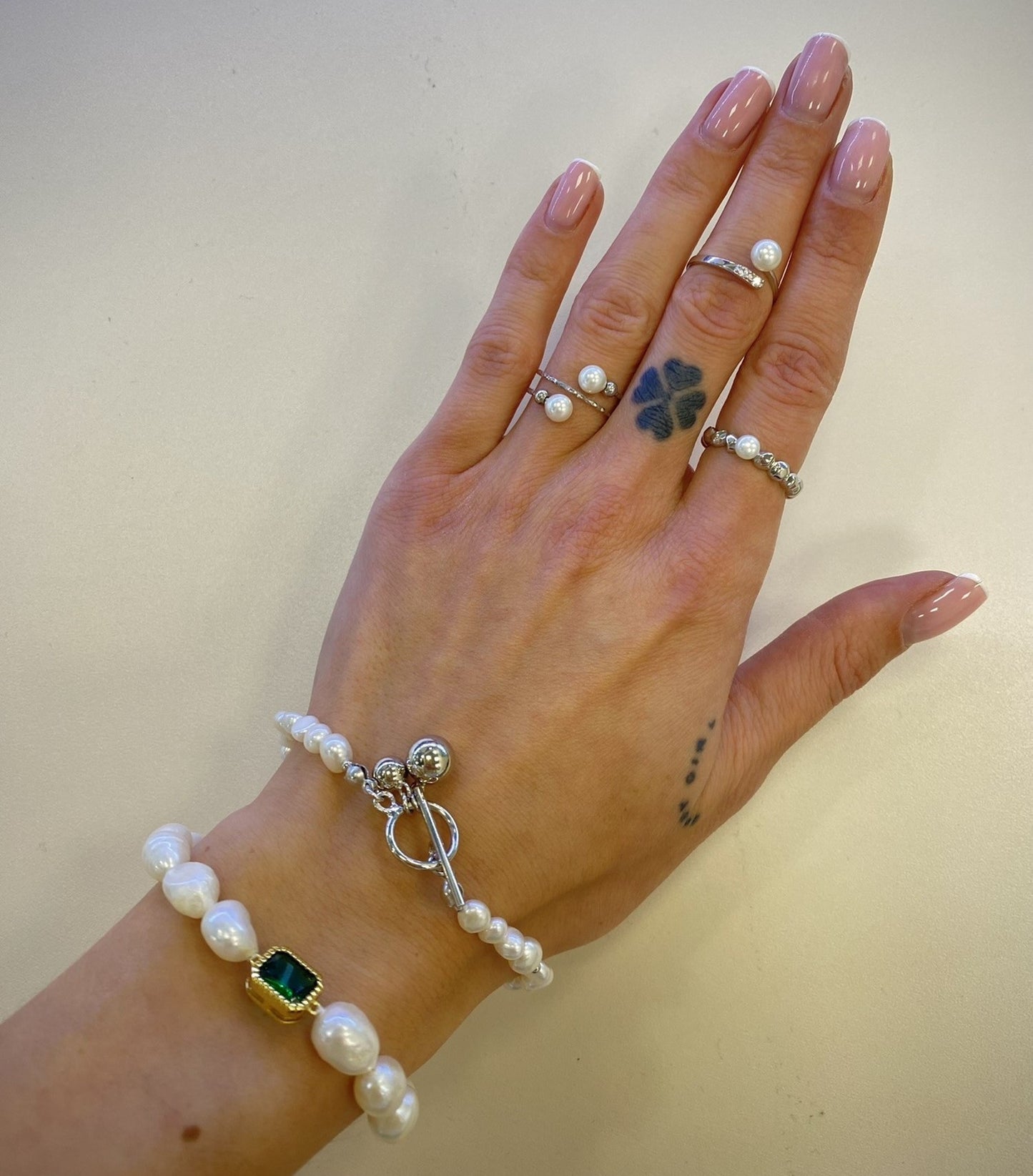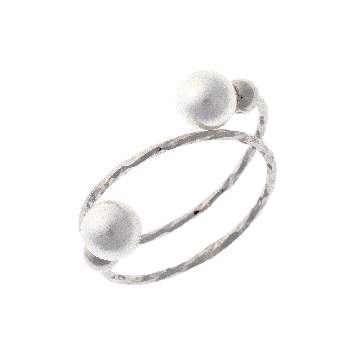 Sidabrinis rodžiuotas reguliuojamo dydžio žiedas su perlu