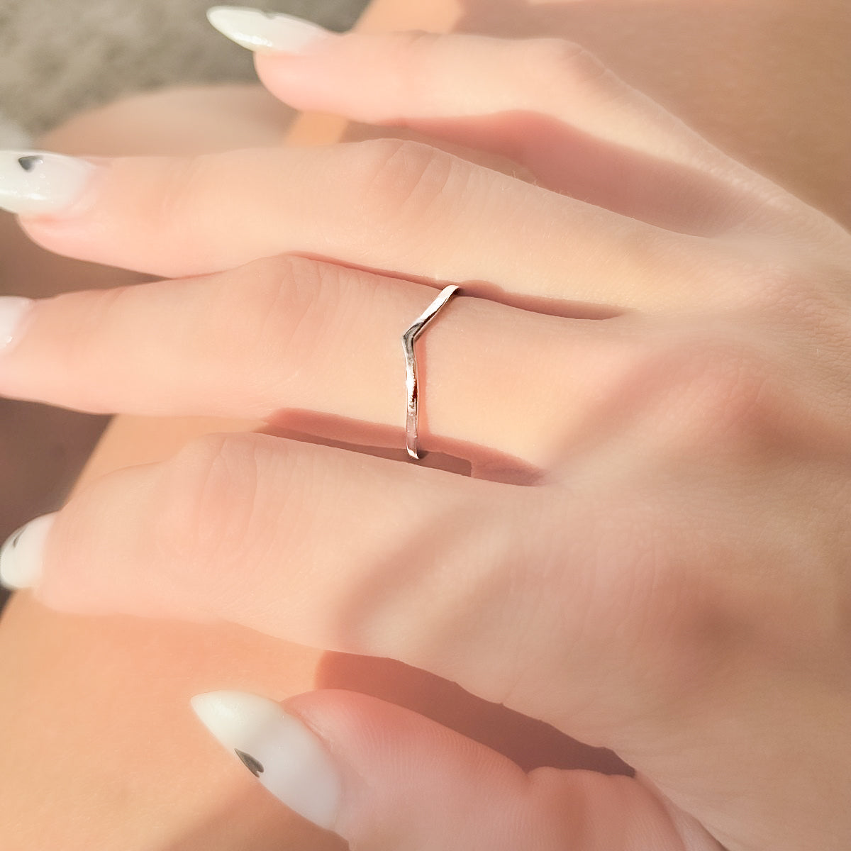Subtilusis V formos dizainas suteikia lengvumo ir išraiškingumo, o derinamas su kitais žiedais atrodo dar įspūdingiau.