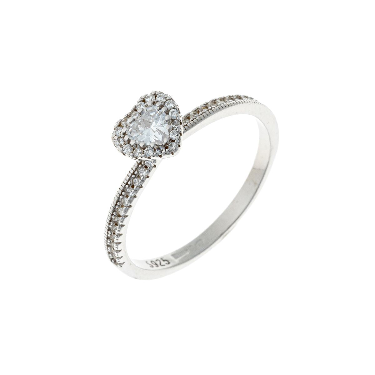 Sidabrinis rodžiuotas žiedas širdelė su cirkoniu