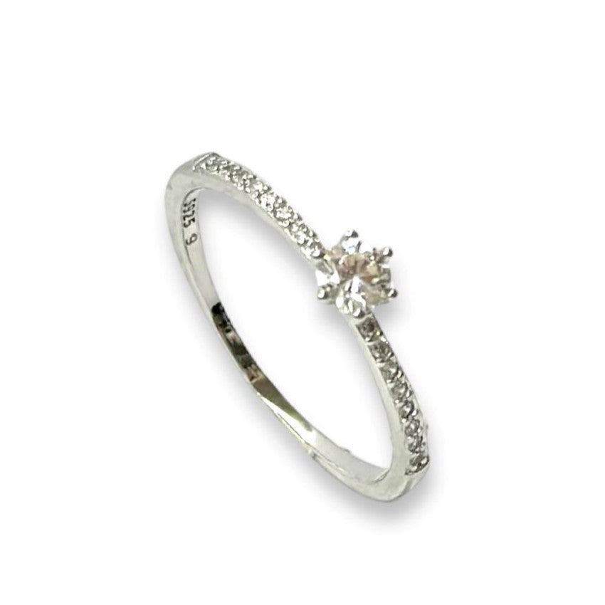 Sidabrinis rodžiuotas žiedas su cirkonio akute