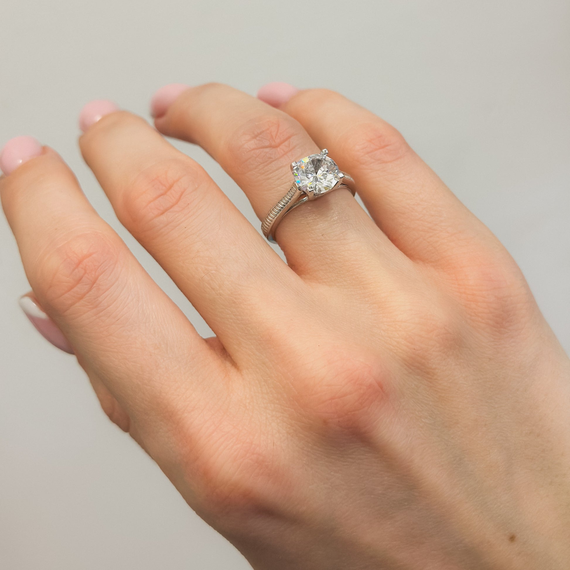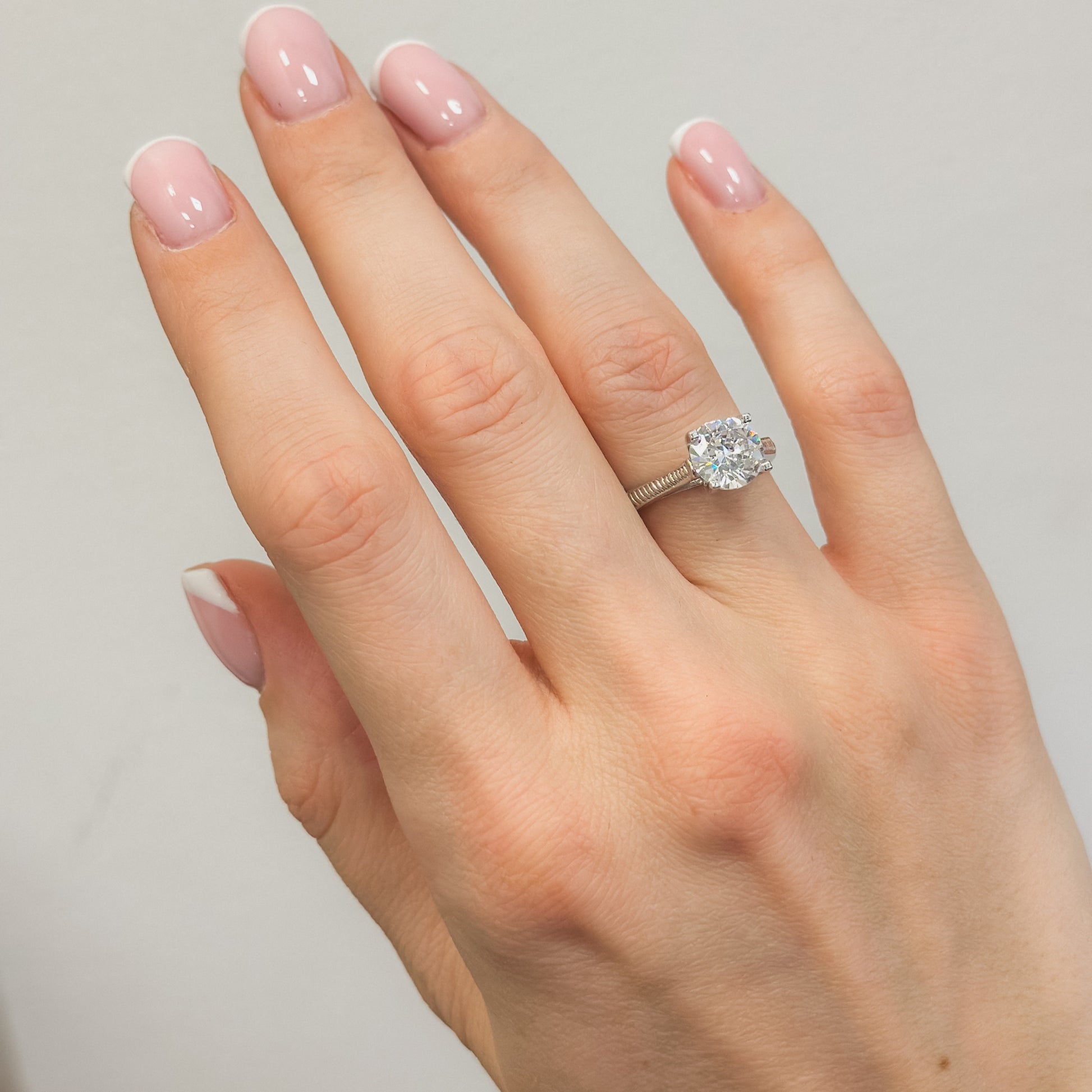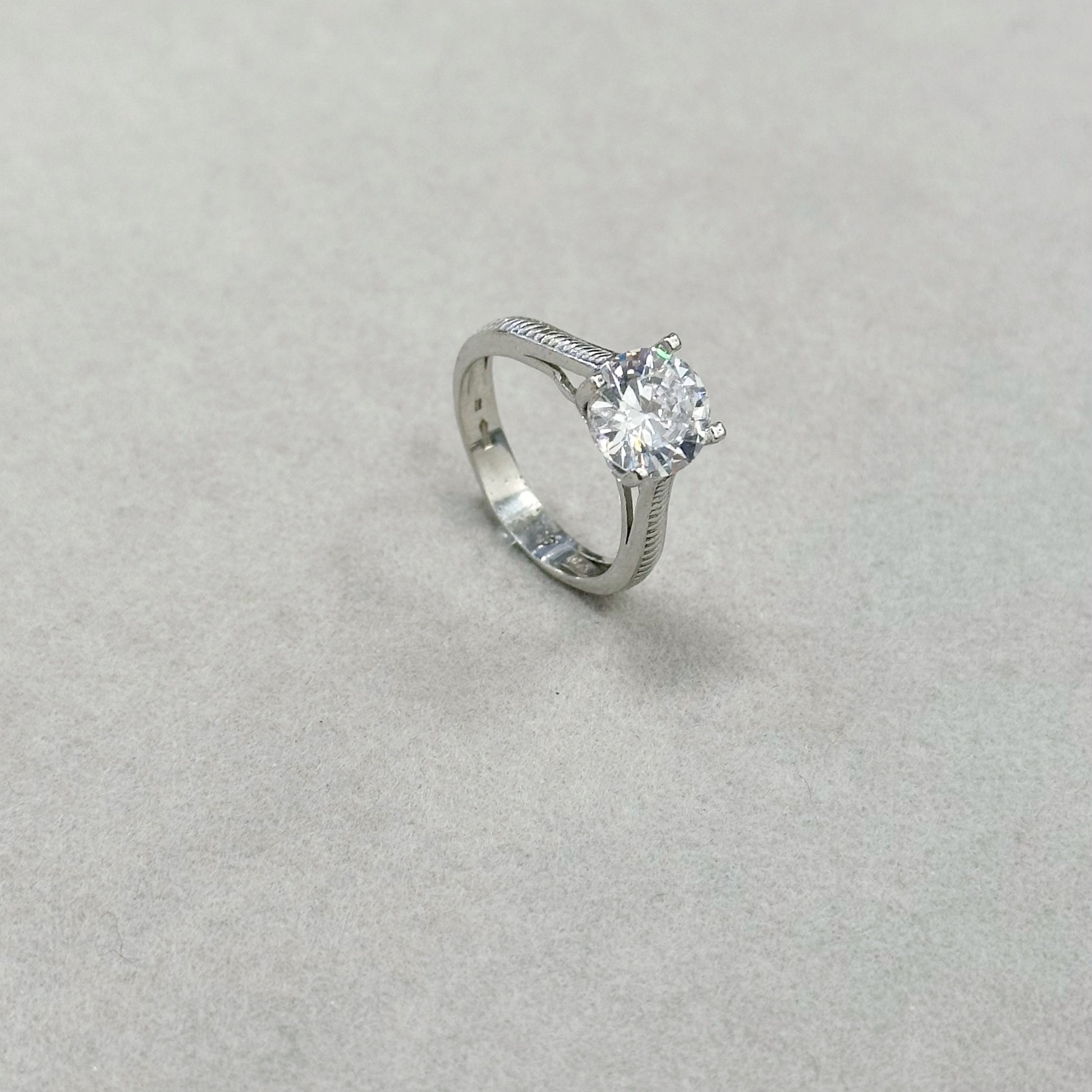 Sidabrinis rodžiuotas žiedas su 8mm cirkonio akute