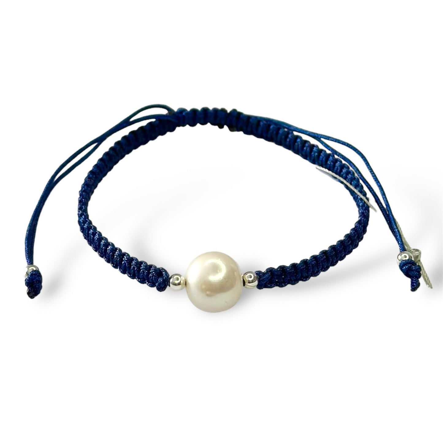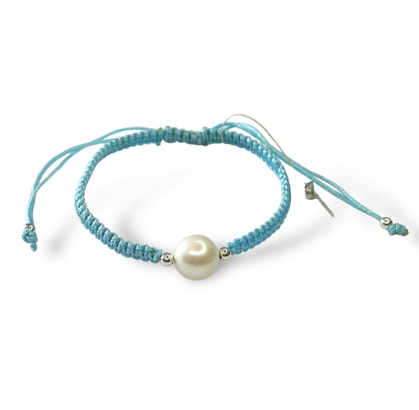 Siūlo apyrankė su sidabriniais karoliukais ir tikru perlu